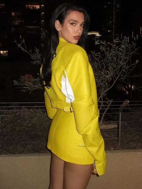 Dua Lipa SpongeBob Yellow Leather Jacket